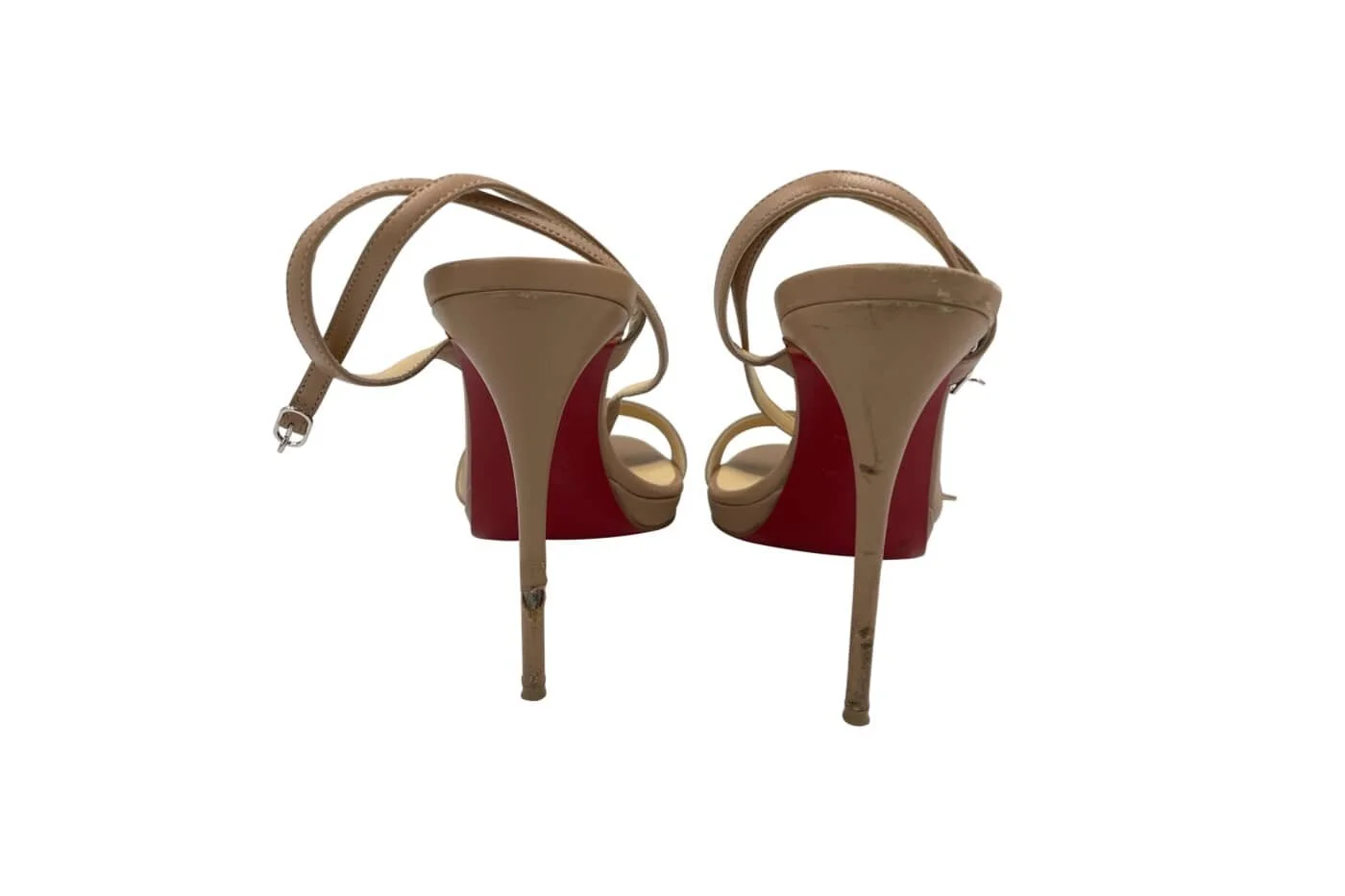 The heel blocks on these Christian Louboutin Loubi Queen leather sandals had been severely scratched and torn, leaving the shoes looking old and worn. When the customer reached out to us for a free diagnosis / quote, we offered to replace the heel tips and replace the heel blocks, covering / wrapping them with entirely new leather.